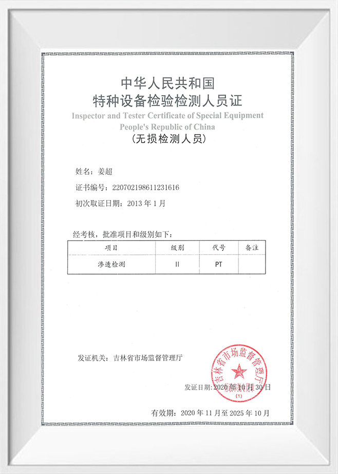 Chứng nhận Thanh tra và Người kiểm tra Thiết bị Đặc biệt Cộng hòa Nhân dân Trung Quốc